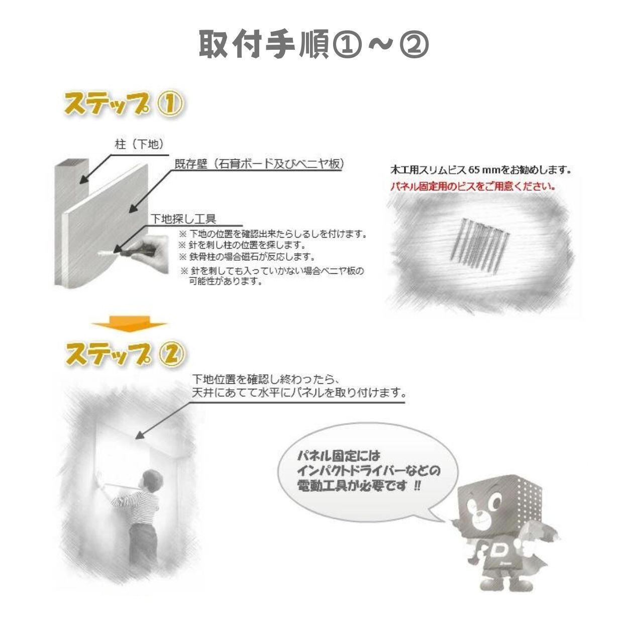 取付けには電動ドライバーが必要となります。