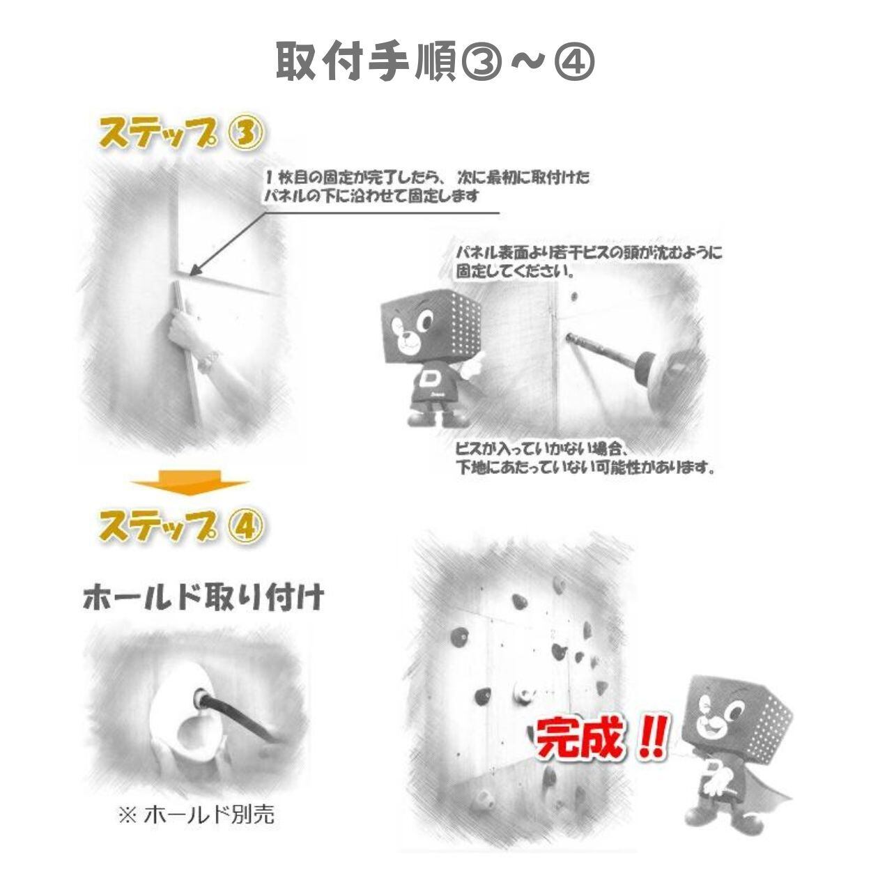 ※割れたり破損したパネル及びホールドは絶対に使用しないようにしてください。